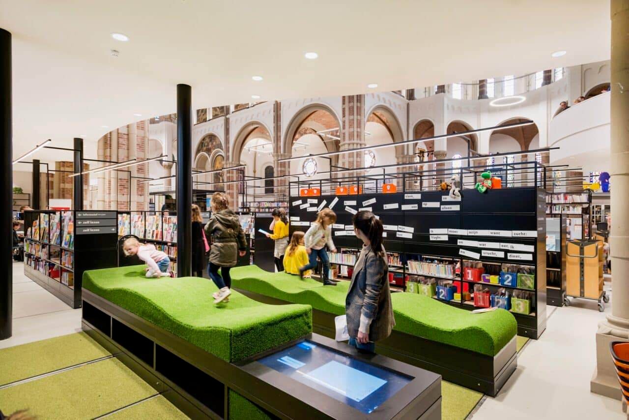 In het Brabantse plaatsje Vught staat de Petruskerk. Een aantal jaren geleden stond dit prachtige kerkgebouw nog op de lijst om te worden gesloopt. Gelukkig heeft het gebouw toch een herbestemming gekregen en niet zo maar één. Deze kerk is omgebouw tot multifunctioneel centrum en fungeert nu als kloppend hart van cultureel Vught. Hier vind men de ultieme combinatie tussen het intact laten van het originele uiterlijk van de kerk, maar met een eigentijdse update. Ook akoestiek was een belangrijk onderdeel van het project. Een bibliotheek met een slechte akoestiek is toch ook ondenkbaar niet waar? Op dit project zijn er vrijgevormde naadloze akoestische plafonds geplaatst onder de verdiepingsvloer.