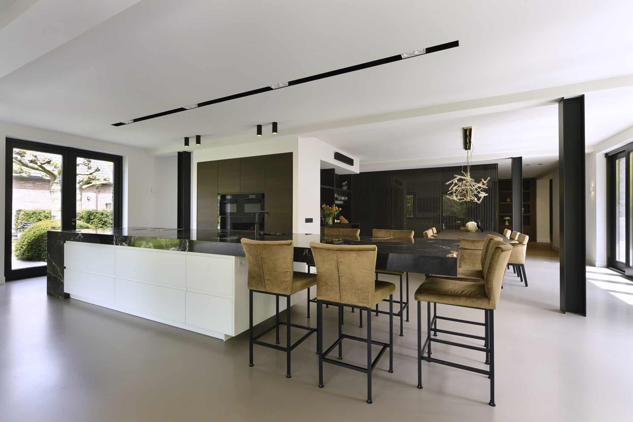 Deze prachtige woning is volledig geïntegreerd in de omgeving. Net zoals de omgeving heerst in de woning kalmte en rust. Een belangrijk element, om deze rust te realiseren, is het akoestisch plafond . In totaal is meer dan 150m² aan akoestiek gemonteerd door onze vakmensen. Hier is gekozen voor de Eleganza, een naadloos akoestisch plafond, dat onzichtbaar is voor het oog maar niet voor het gehoor.