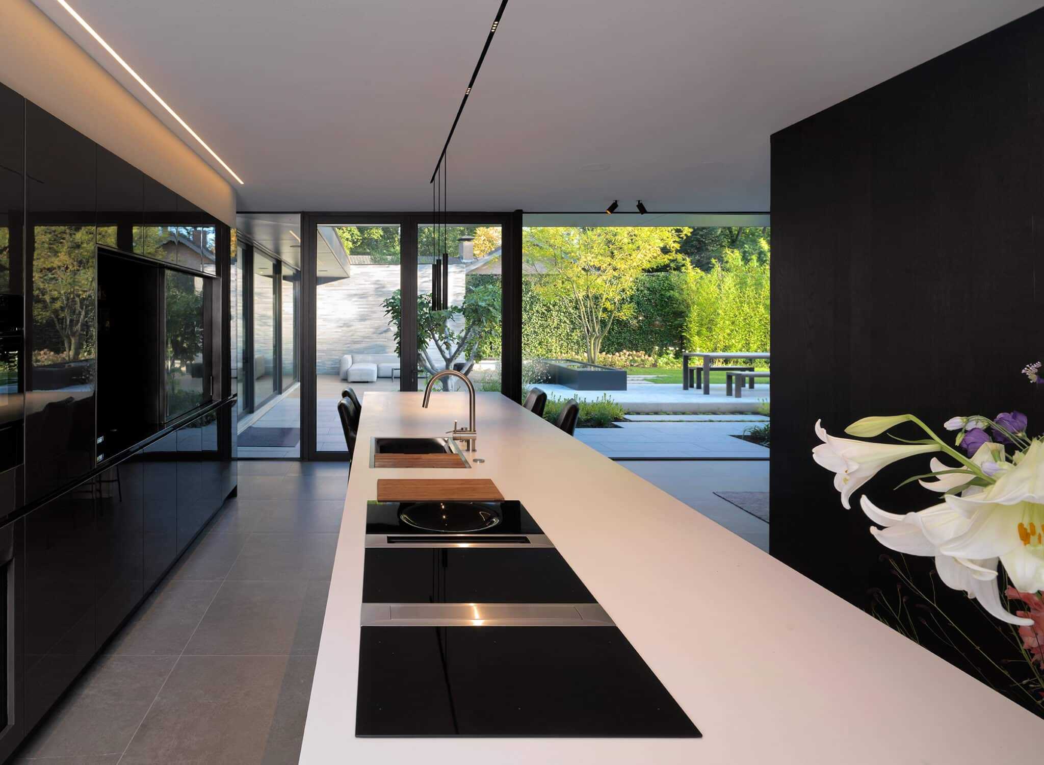 In deze prachtige woning is in diverse ruimtes akoestiek toegepast. De woonkamer en keuken, de gang met een hoogte van 5 tot 6 meter en boven het zwembad.