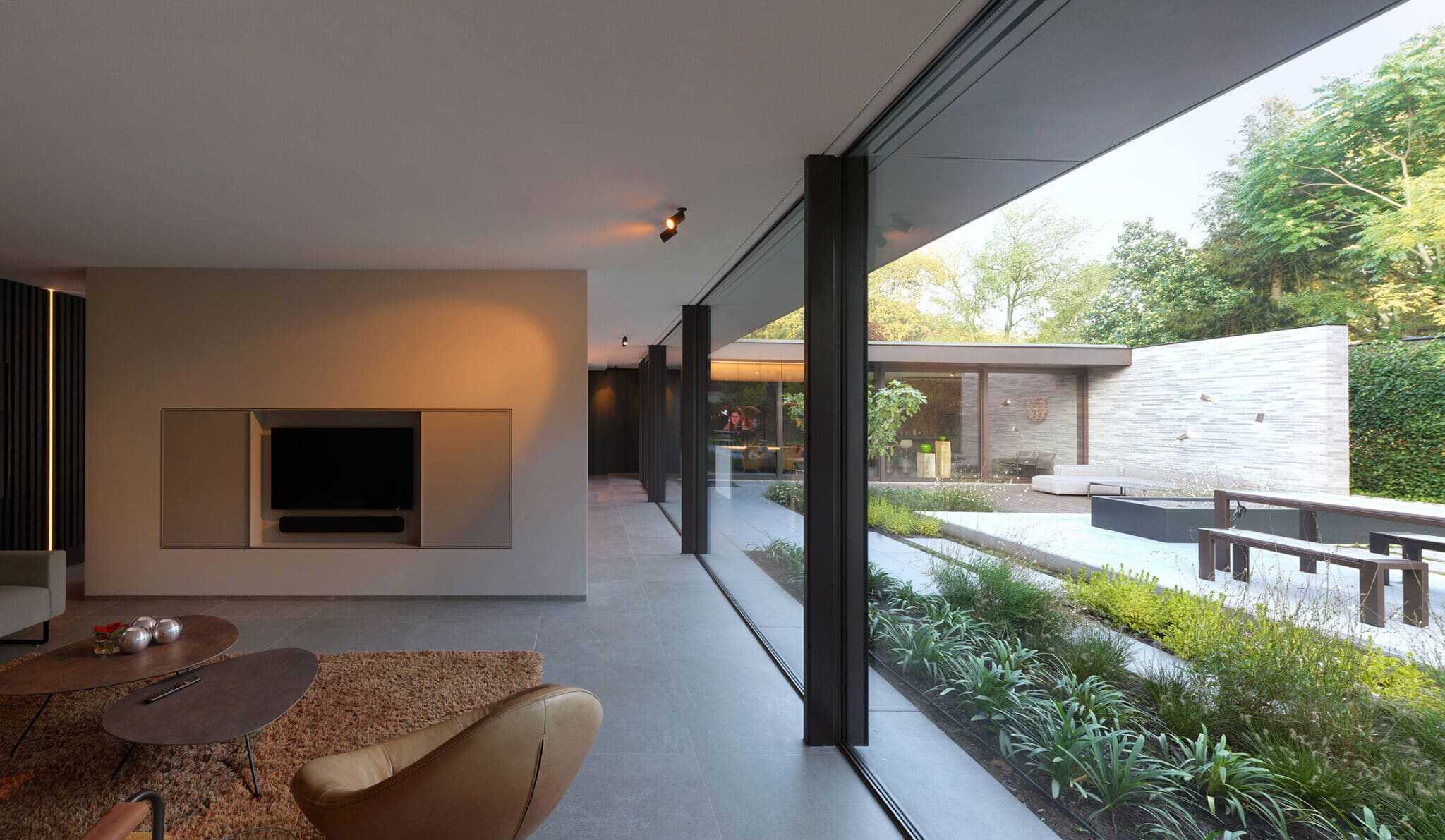 Het akoestisch plafond maakt van de galm en echo in woning verleden tijd. In de woonkamer is over het totale oppervlakte akoestiek, de Eleganza, geplaatst, waardoor het geluid voor 95% wordt geabsorbeerd door het akoestisch plafond. Dit is ook het geval in de gang en boven het zwembad.