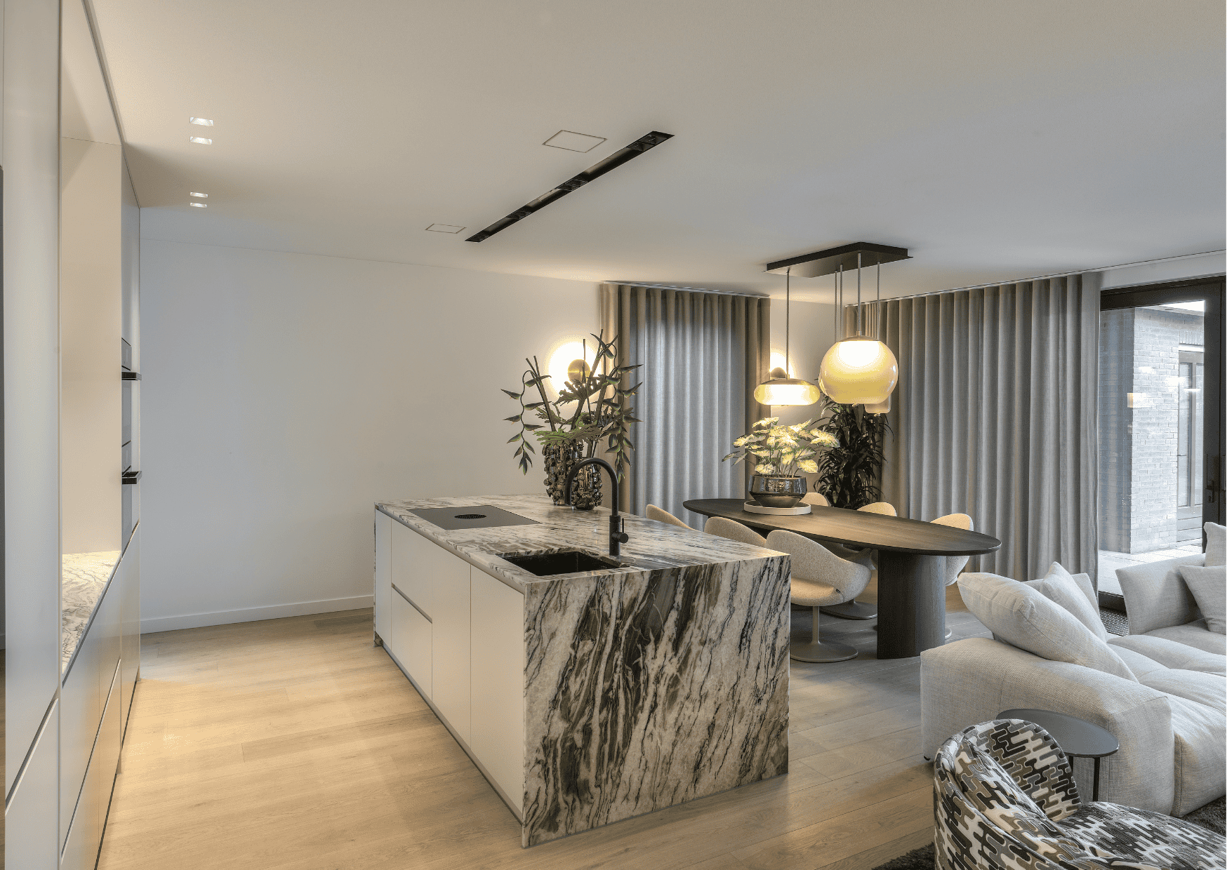 Het resultaat is een harmonieuze combinatie van design en functionaliteit. Het interieur behoudt zijn moderne uitstraling, terwijl de akoestiek in huis aanzienlijk is verbeterd. Zo is er nu een stijlvolle, serene woonomgeving waarin zowel rust als sfeer volledig tot hun recht komen.