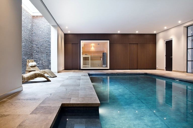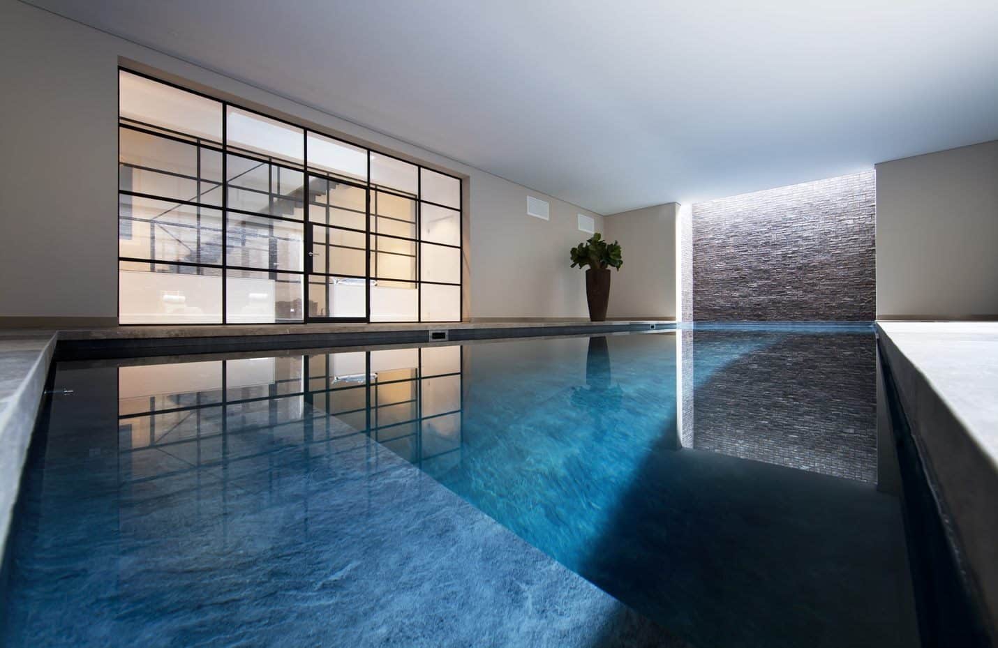 Voor dit zwembad is over het hele oppervlakte een naadloos akoestisch plafond toegepast. Zo kunnen de bewoners uitrusten op de ligstoelen, ontspannen in de sauna en tegelijkertijd plezier maken in het zwembad, zonder dat de geluiden blijven galmen door de ruimte.